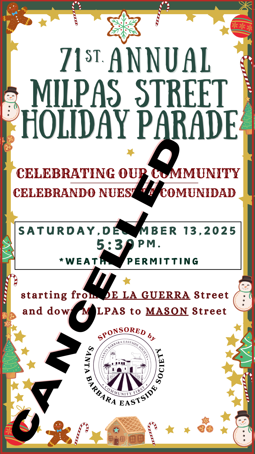 For generations, the Milpas Street Holiday Parade has been a space of joy, unity, and cultural pride, an event where every family, regardless of status, could gather safely and celebrate the rich spirit of Santa Barbara’s Eastside. Yet this year, many longtime participants have shared that the level of fear and vulnerability they are experiencing makes joining a large public event feel unsafe. To move forward without honoring those concerns would contradict the very values that this parade was built upon.
